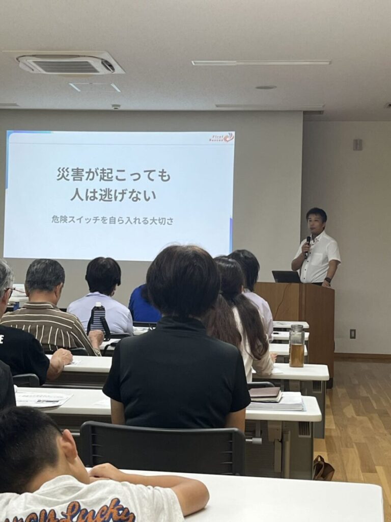 9月28日(日)13:30-15:00に、井原市県主公民館で開催された「スマートフォンを活用して災害に備えよう!防災講演会」に、ファーストレスキューの東山幸史(元消防士)が講師として参加し、「南海トラフ巨大地震に備える 〜家庭と地域でできる具体的対策〜」の防災講座を提供しました。