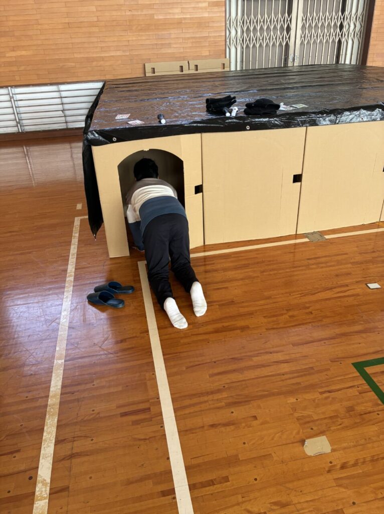 西七区町内会防災訓練でまっくらレスキュー迷路を実施