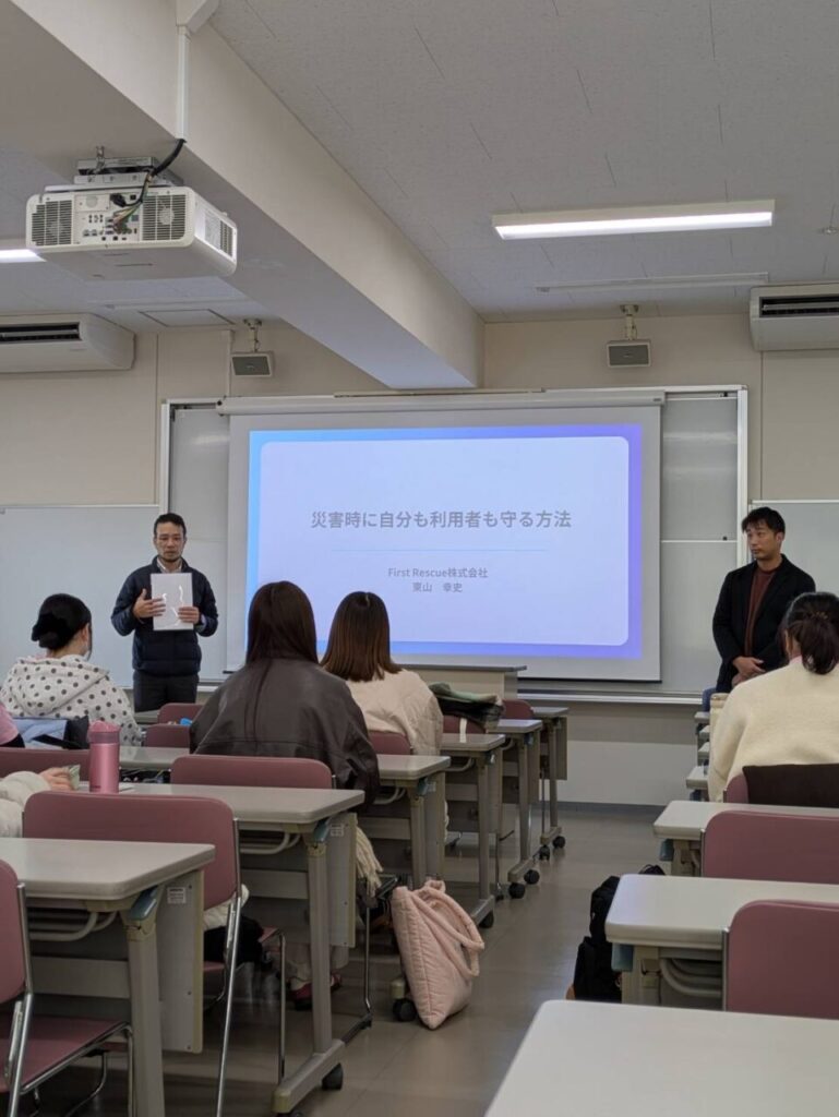 ファーストレスキュー株式会社では、大学・専門学校向け防災講義をはじめ、様々な防火防災安全に対する活動を行っています。