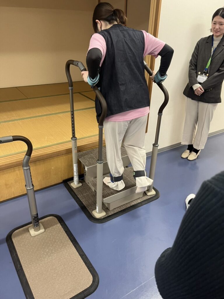 シャワーチェアー・ポータブルトイレ・手すりなど、実際の福祉用具に触れながら、在宅環境における生活動作支援のあり方を学びました。