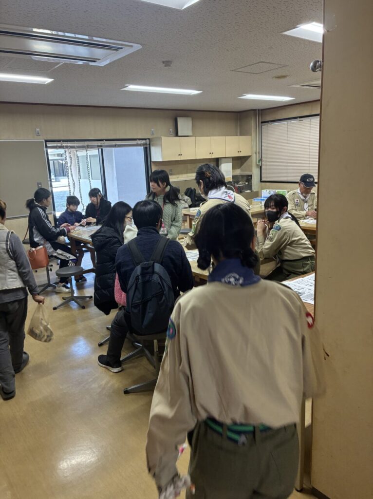 ボーイスカウトによるロープ結索体験 ボーイスカウトの指導のもと、災害時に役立つロープの結び方を体験。実際に手を動かしながら、避難や救助に活用できる技術を学びました。